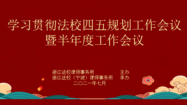 为了深入学习贯彻法校“四五规划”,进一步规范律所管理和风险防控,进一步提升法校治理能力和治理水平,进一步发挥法校人才优势和机构优势,进一步增强法校竞争力和品牌影响力,全面实现法校四五规划确定的工作目标和任务,近日,浙江法校律师事务所在宁波召开学习贯彻法校四五规划工作会议暨半年度工作会议,研讨、解决法校管理、执业和发展中的重大问题。会议由法校事务所执行主任兼党支部副书记童丽玲同志主持,浙江法校律师事务所总所党政班子、咨管会班子、分所党政班子、各业务团队负责人等参加了本次会议。