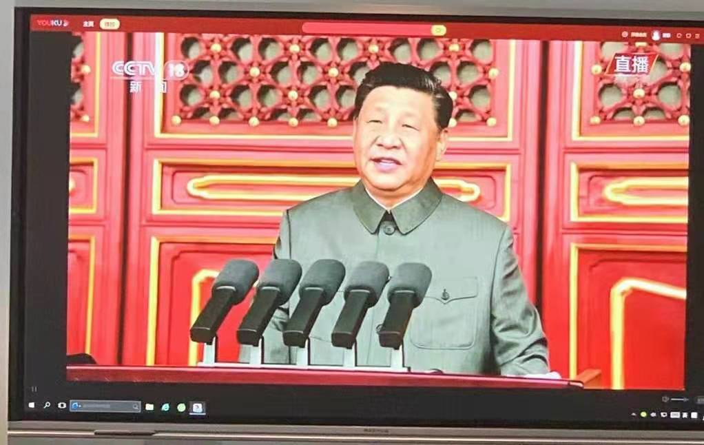 在浙江法校律师事务所多功能会议室,法校支部组织党员律师观看习近平总书记在庆祝中国共产党成立100周年大会上的重要讲话。