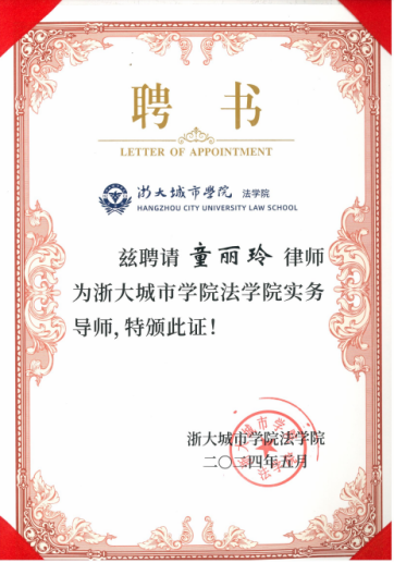 为更好地适应法治国家、法治政府、法治社会的新要求,近日,我所执行主任童丽玲被聘任为浙大城市学院法学院实务导师,参与到人才培养的全过程,为学生传授职业发展、人生规划的宝贵经验。