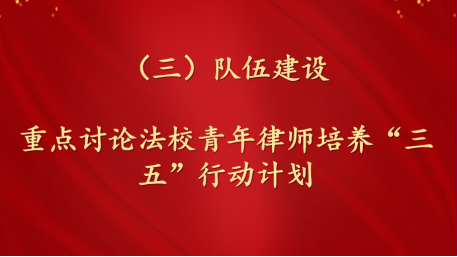 (三)、队伍建设。重点讨论法校青年律师培养“三五”行动计划