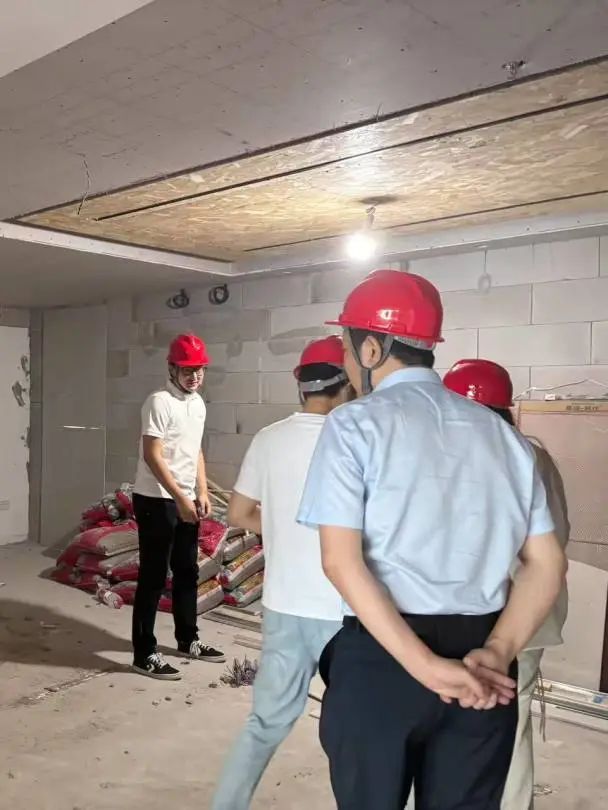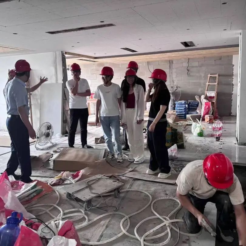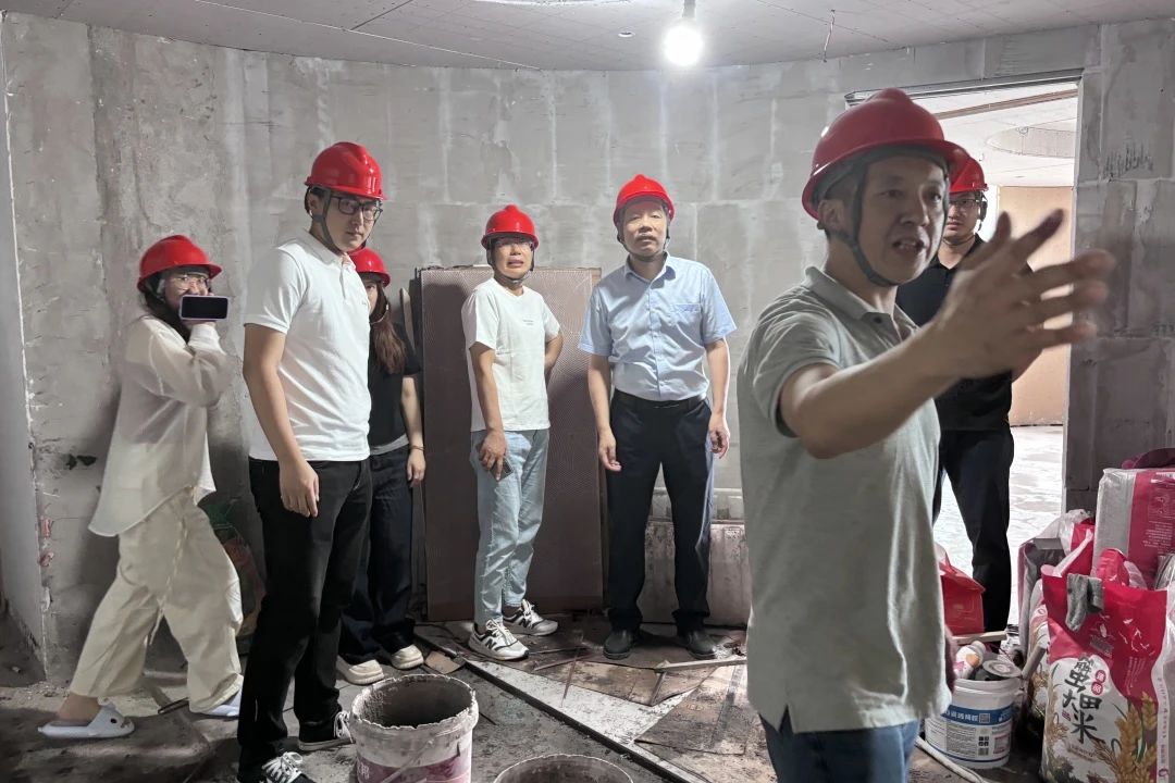 在项目现场,朱景雄律师一行与现场工程管理人员进行了深入交流。法校建工律师们围绕建设工程施工合同纠纷争议点中常见的工程专业性问题,如施工组织、质量验收、工程进度、工期延误损失索赔、工程计量计价及造价管理等,与一线管理人员交流探讨。现场负责人结合工程实际,介绍了装饰装修工程项目概况,方案及施工图设计、施工工艺、流程及进度、质量控制等,并指出了建设工程实践中遇到的常见问题、典型事例及行业操作惯例。双方就如何更好地识别风险、规范风险、保障各方合法权益等问题展开了深度交流。深入施工现场理解施工规范、工艺流程、造价管理等专业知识,是律师准确剖析证据材料(如图纸、签证、验收记录)并构建法律论证的基础。掌握工程专业语言和行业惯例,使得律师能与工程师、鉴定单位等准确、高效沟通,更有效地为客户提供贴合实际的风险防控和争议解决方案,提升法律服务的专业价值。这种“从理论中来,到实践中去”的互动,使得法校建工律师对建设工程行业有了更深刻的认识,进一步提升了解决复杂工程法律实务问题的能力。