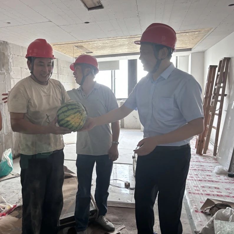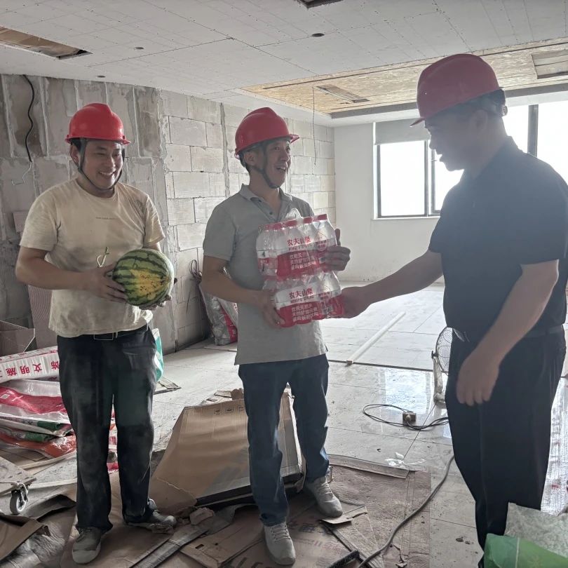2025年7月9日上午,浙江法校律师事务所副主任、建设工程法务部主任朱景雄律师,带领事务所青年党员律师及建设工程法务团队律师,深入装饰装修工程现场,开展建设工程专业实务问题交流,并亲切慰问了奋战在高温一线的作业人员,送去关怀与清凉。