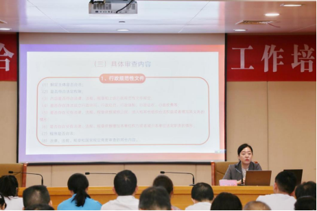 童丽玲主任重点解读了《规定》的主要内容和要点。深入剖析了合法性审查的核心概念、程序和要求,介绍了合法性审查的具体方法和技巧,以及相关的责任和义务。并结合实际案例,针对合法性审查中常见的问题和挑战,提供了解决方案和实践经验,以期帮助与会人员更好地理解和应用《规定》。