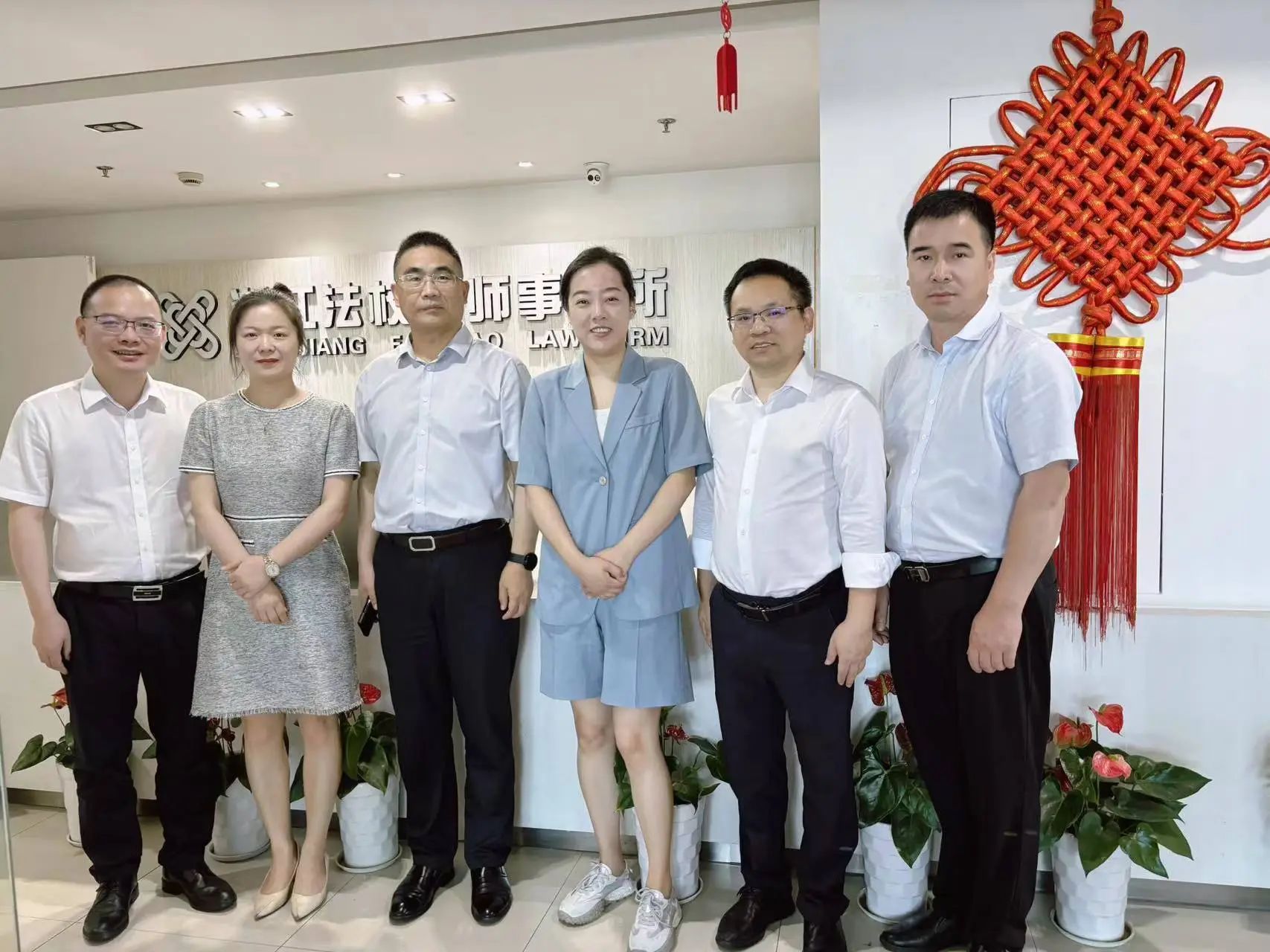 近日,杭州市律协副会长、中小委主任奚勤平一行莅临我所走访调研。市律协副秘书长叶胜男,市律协中小委副主任江斌、陆富等陪同,我所执行主任童丽玲,办公室主任赵建江等热情接待,并参与座谈。